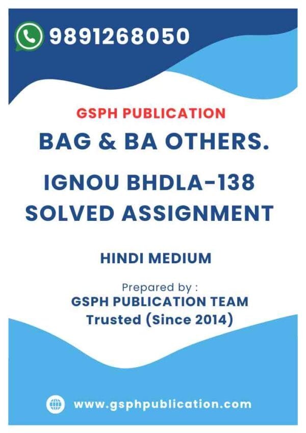 Are you in search of the IGNOU BHDLA-138 Solved Assignment? Look no further! We have you covered with our user-friendly PDF, packed with all the answers you need. Our team of experts is well-versed in IGNOU coursework, ensuring that the content is both accurate and of the highest quality. This assignment serves as a great resource to deepen your understanding of the course and excel in your studies.Once the payment is completed, students can instantly download the assignment in PDF format to their PC, laptop, or mobile device. This assignment is a comprehensive resource designed to help students better understand the subject and prepare effectively for their exams.