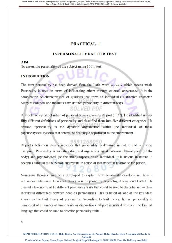 This 16 PF Test Practical PDF has been carefully prepared to help IGNOU MAPC students understand the complete structure and writing style required for this psychological assessment practical. It includes clear explanations, sample layouts, scoring interpretation support, and formatting guidance that reflect IGNOU’s expectations.