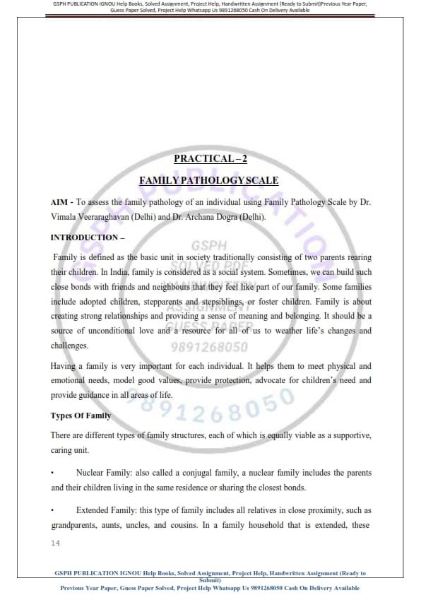 This Family Pathology Scale Practical PDF has been carefully prepared to help IGNOU MAPC students understand the complete structure and writing style required for this psychological assessment practical. It includes clear explanations, sample layouts, scoring interpretation support, and formatting guidance that reflect IGNOU’s expectations.