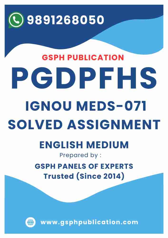 Are you in search of the IGNOU MEDS-071 Solved Assignment ? Look no further! We have you covered with our user-friendly PDF, packed with all the answers you need. Our team of experts is well-versed in IGNOU coursework, ensuring that the content is both accurate and of the highest quality. This assignment serves as a great resource to deepen your understanding of the course and excel in your studies.Once the payment is completed, students can instantly download the assignment in PDF format to their PC, laptop, or mobile device. This assignment is a comprehensive resource designed to help students better understand the subject and prepare effectively for their exams.