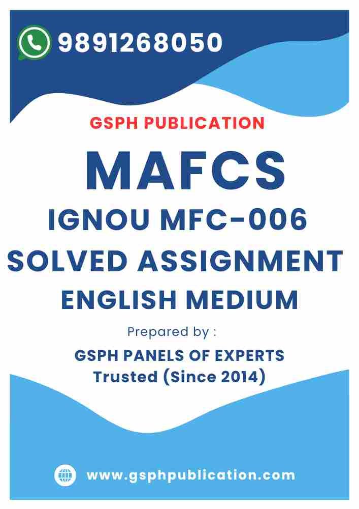Are you in search of the IGNOU MFC-006 Solved Assignment ? Look no further! We have you covered with our user-friendly PDF, packed with all the answers you need. Our team of experts is well-versed in IGNOU coursework, ensuring that the content is both accurate and of the highest quality. This assignment serves as a great resource to deepen your understanding of the course and excel in your studies.Once the payment is completed, students can instantly download the assignment in PDF format to their PC, laptop, or mobile device. This assignment is a comprehensive resource designed to help students better understand the subject and prepare effectively for their exams.