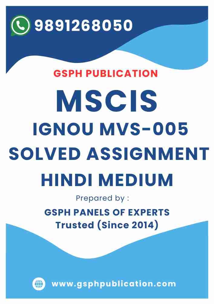 Are you in search of the IGNOU MVS-005 Solved Assignment ? Look no further! We have you covered with our user-friendly PDF, packed with all the answers you need. Our team of experts is well-versed in IGNOU coursework, ensuring that the content is both accurate and of the highest quality. This assignment serves as a great resource to deepen your understanding of the course and excel in your studies.Once the payment is completed, students can instantly download the assignment in PDF format to their PC, laptop, or mobile device. This assignment is a comprehensive resource designed to help students better understand the subject and prepare effectively for their exams.